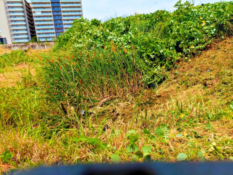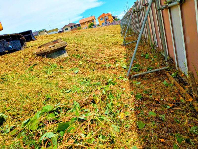 こちらの空き地も法面(斜面)での作業です。この写真のエリアは気合いで1人で刈り進めました!