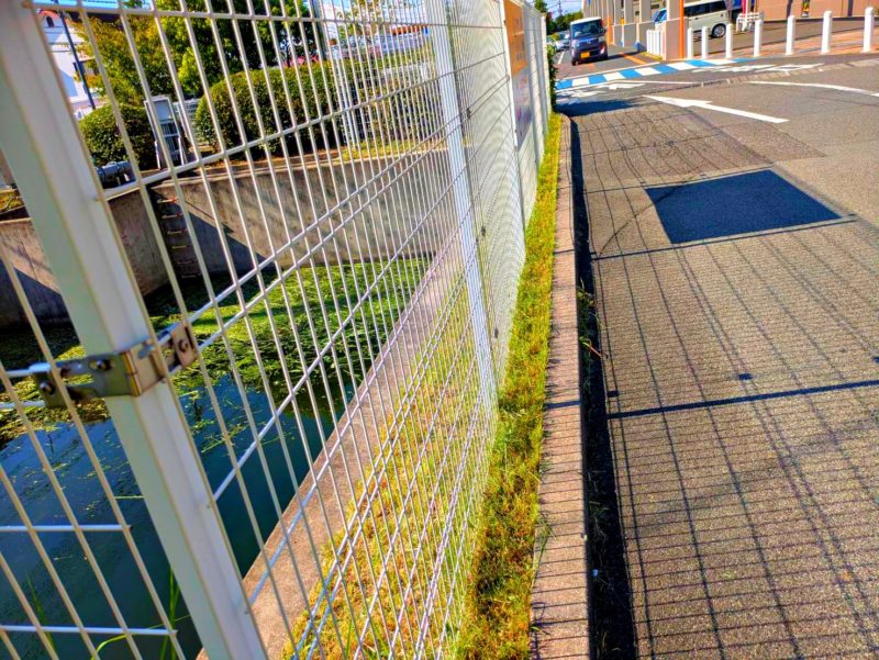 このフェンスの表側・裏側と除草していきます。裏側は池ポチャに注意!