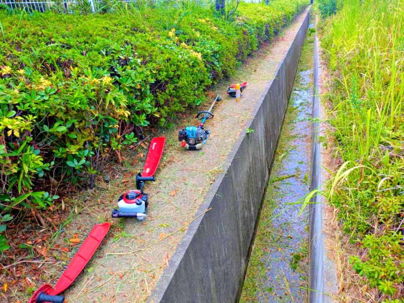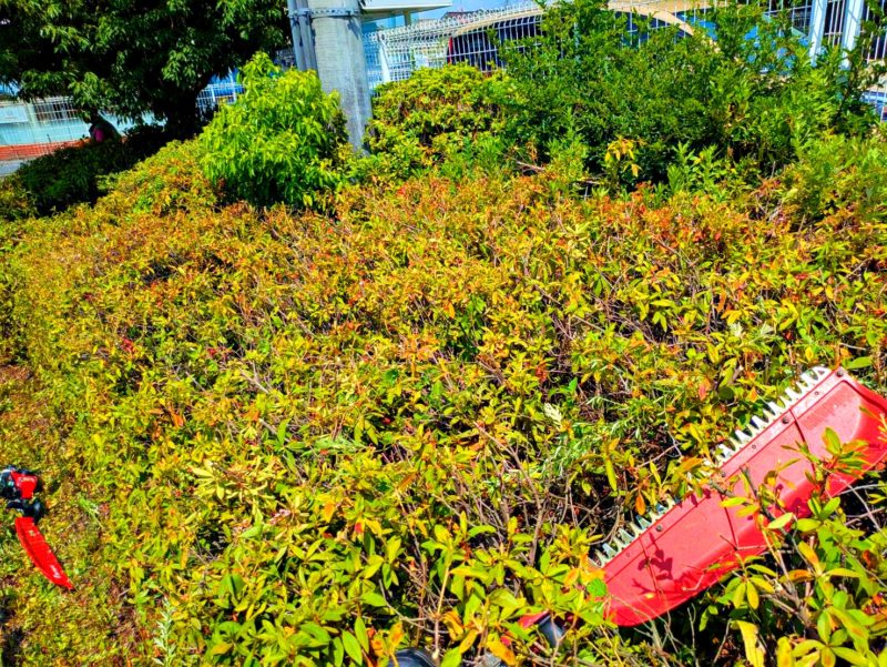このエリアは草刈り機、トリマー(バリカン)の両方でキレイに剪定していきます。
