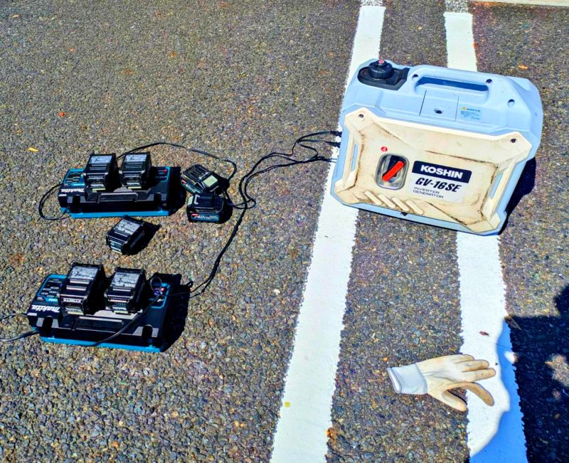 このような広い現場ではバッテリーはすぐに消耗してしまうので、ポータブル電源必須です!