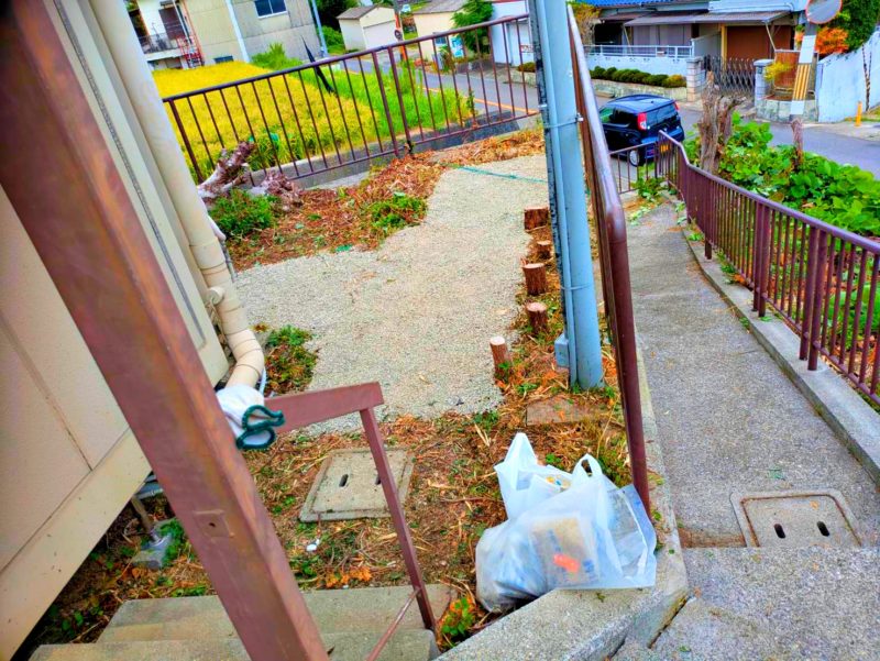 そして今回は、以前家のリフォームの手伝いのご依頼を頂いた方に、一軒家の中庭の草刈り、防草シート張り、そして砂利轢きのご依頼を頂きまして、大阪府堺市へ作業に行ってきました。