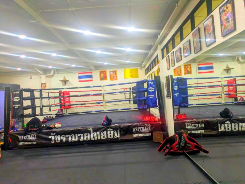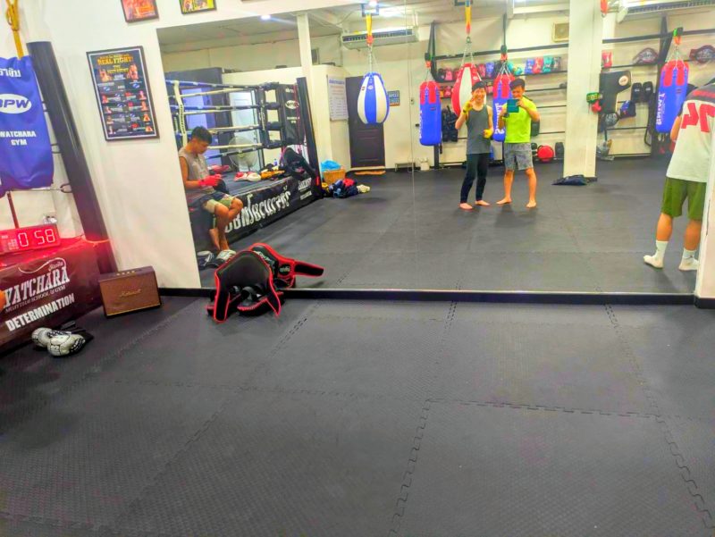 室内でクーラーがしっかり効いたキレイなジムです。ここで仲間3人でトレーニングを行います。ちなみに今回の旅仲間3人は格闘技仲間ですので、このムエタイジム出稽古はうってつけの楽しいイベントです!