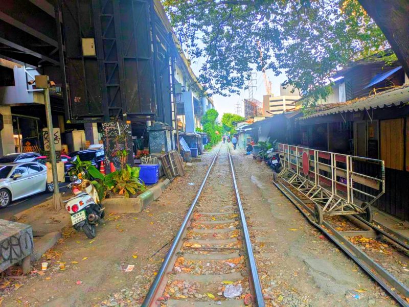 場所がどの辺りかあまり覚えていませんが、ルンピニー公園から次の予約したホテルへ歩いて移動中に撮った写真も幾つか載せておきます。確かここはルンピニー公園のすぐ近くの路線だった気がします。