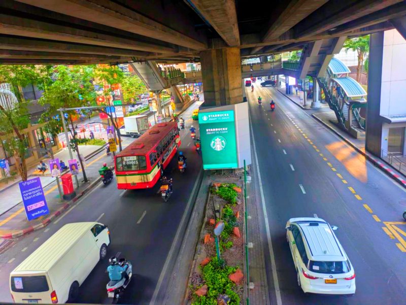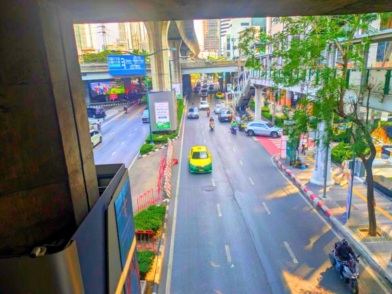 ここは若干迷子になって高架歩道を渡ったときに撮った写真。同じくここがどの辺りなのか覚えていませんが、大都会の感じからバンコクど真ん中でしょうきっと!