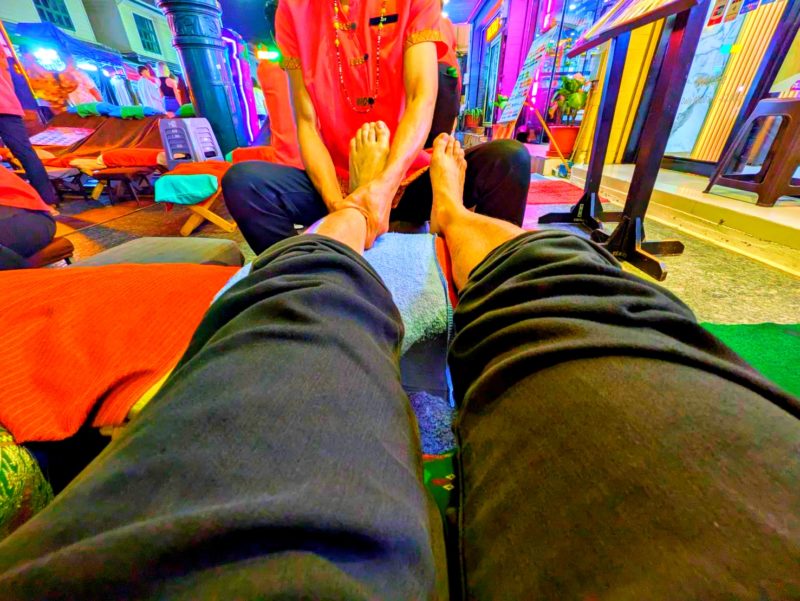 その後はお店でタイ式フットマッサージをお願いしました。30分で900円でしたが、40分以上施術してもらえたのと、肩や首までマッサージしてもらえました。もちろんカオサン通り内のマッサージ店なので全くリラックスは出来ませんよ(笑)。