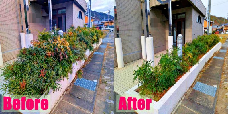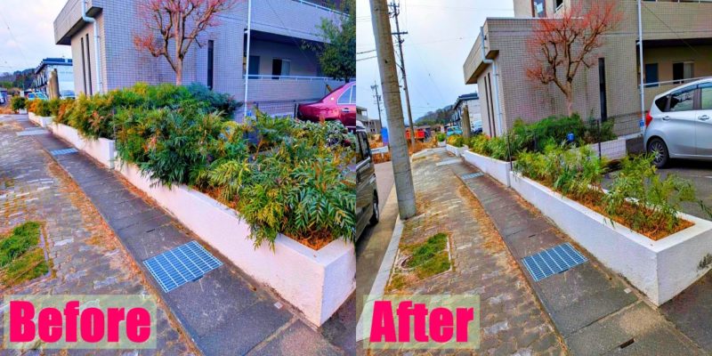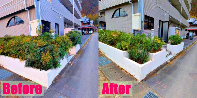 今回は、不動産会社の営業さんから案件を頂きまして、三重県名張市へマンションの植栽管理を行いました。