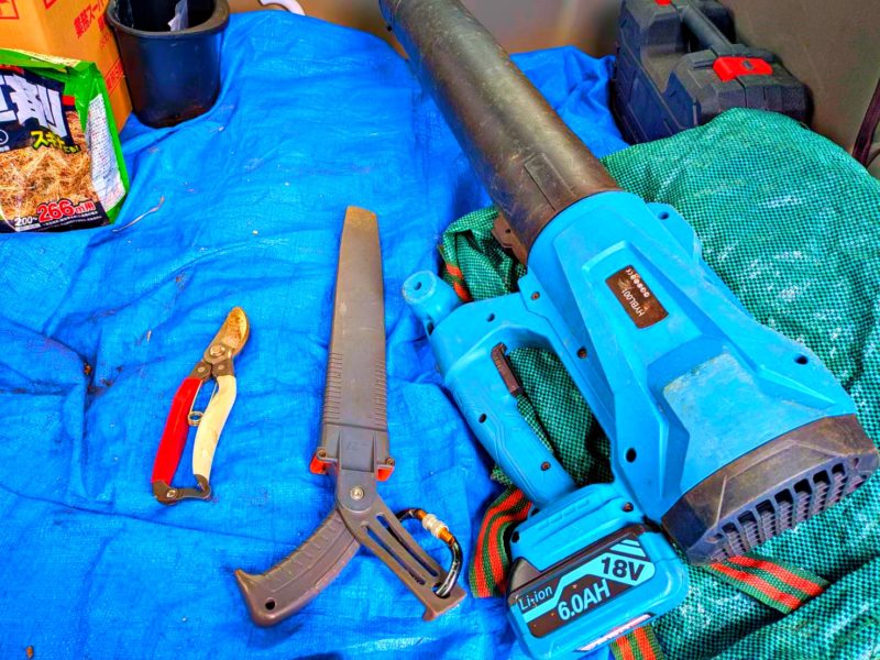 ちなみに作業で使用した道具はこれだけです。トリマー(剪定バリカン)は使いませんでした。
