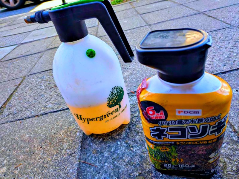 とはいえ、ツタの再生力は半端ないです。液剤と粒剤のダブルパンチで多めに除草剤を撒いておきました。